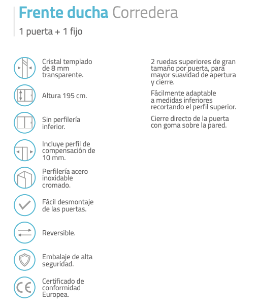 Esta mampara Elípsis, con perfil de acero inoxidable cromado con embalaje de alta seguridad y un certificado de conformidad.