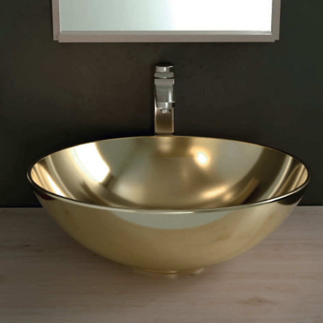 Bol lavabo decorativo sobre-encimera. Sin rebosadero. Porcelana oro , plata o bronce.